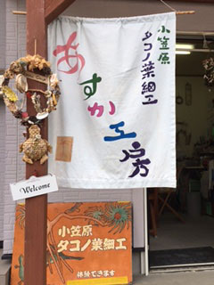 从战前传到小笠原的民间工艺品,章鱼叶工艺品专业的小工作室。费工夫舔过的结实的章鱼叶,其特征是越用越有味道。因为也能体验手镯和租赁等的制作,试着挑战只自己的土特产制作。体验 (材料费) 1000日元 ~,所需40分钟 ~ 1小时30分钟。