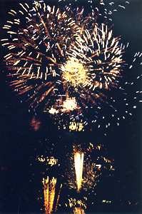 大家和祭的名产活动,约有1000发烟花,回响在对岸的岛根半岛的烟花炸裂声充满震撼力。