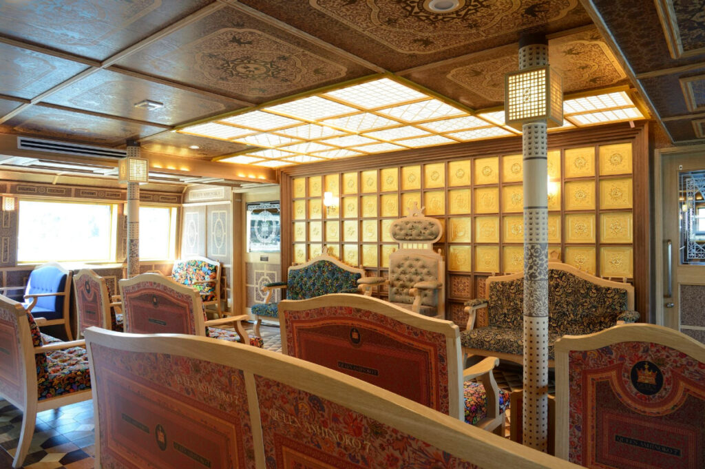 「皇家 Ⅱ」 以18世紀的法國船艦為模型,再現了船內外的裝飾。 船體後部的迴廊特別有氣氛,一定要確認一下。 另外,船員的人偶像和3D藝術等,能享受非日常生活的興趣也是重點。 定員565人 (其中特別艙111人)。