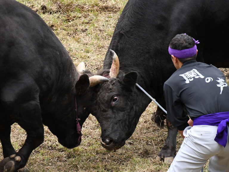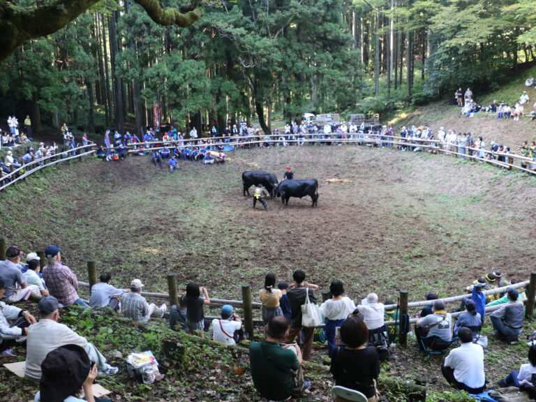 隱岐的 「牛刺」 是為了安慰因承久之亂被隱岐沖走的後鳥羽上皇,隱岐的人們,收集了看起來很強的公牛,供了高見。 擁有約800多年悠久歷史的一夜獄牛衝擊大會,成為 「隱岐的牛衝擊」 的千秋樂。 在決戰前展示豪華絢爛的相撲場地是習俗。