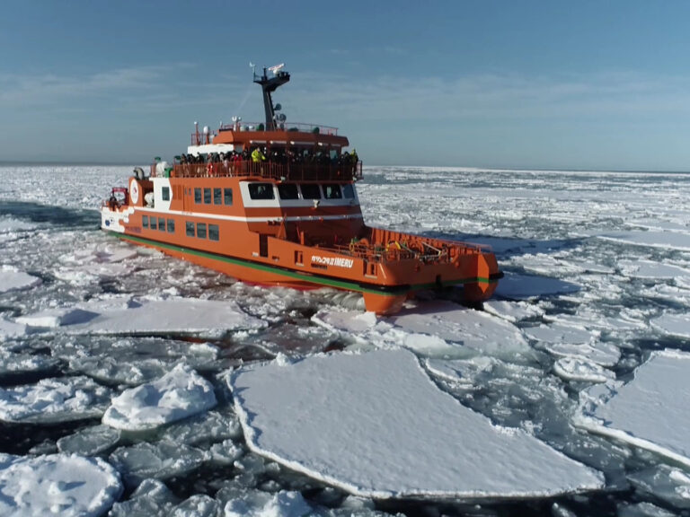 擁有鮮紅的機身和2根特殊螺絲的加林科號,原本是為阿拉斯加油田開發而建造的破冰船。 平成16年(2004) 被登記為北海道遺產。 船室內供暖完備。 以衝著在鄂霍次克沿岸填滿白色的流冰的遊輪 (1 ~ 3月) 為首,紋別レイ魚釣魚等夏天的旅行也很受歡迎。
