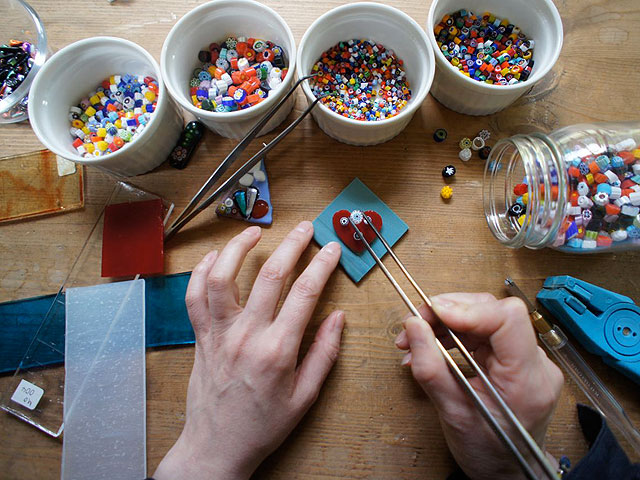 融化威尼斯玻璃製作的 「融合」,完成原創飾品和磁鐵