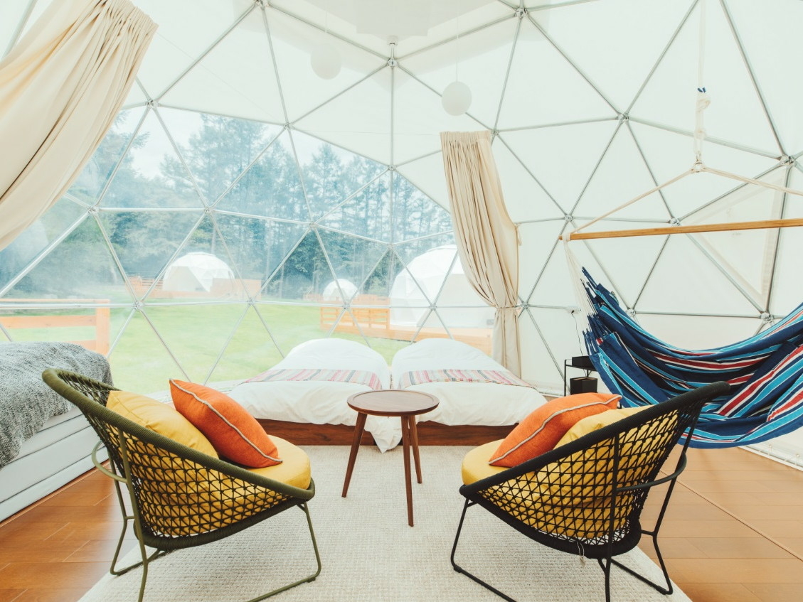 PICA原創的圓頂型常設帳篷。 一部分透明,能得到與自然的一體感的設計