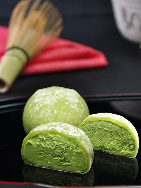 冰涼融化的抹茶生大福,奢侈地使用了宇治的高級抹茶,具有抹茶苦味的奶油大福