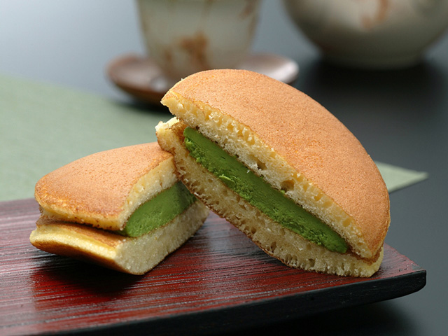 手燒的銅鑼燒皮里有很多抹茶奶油的西式生銅鑼燒