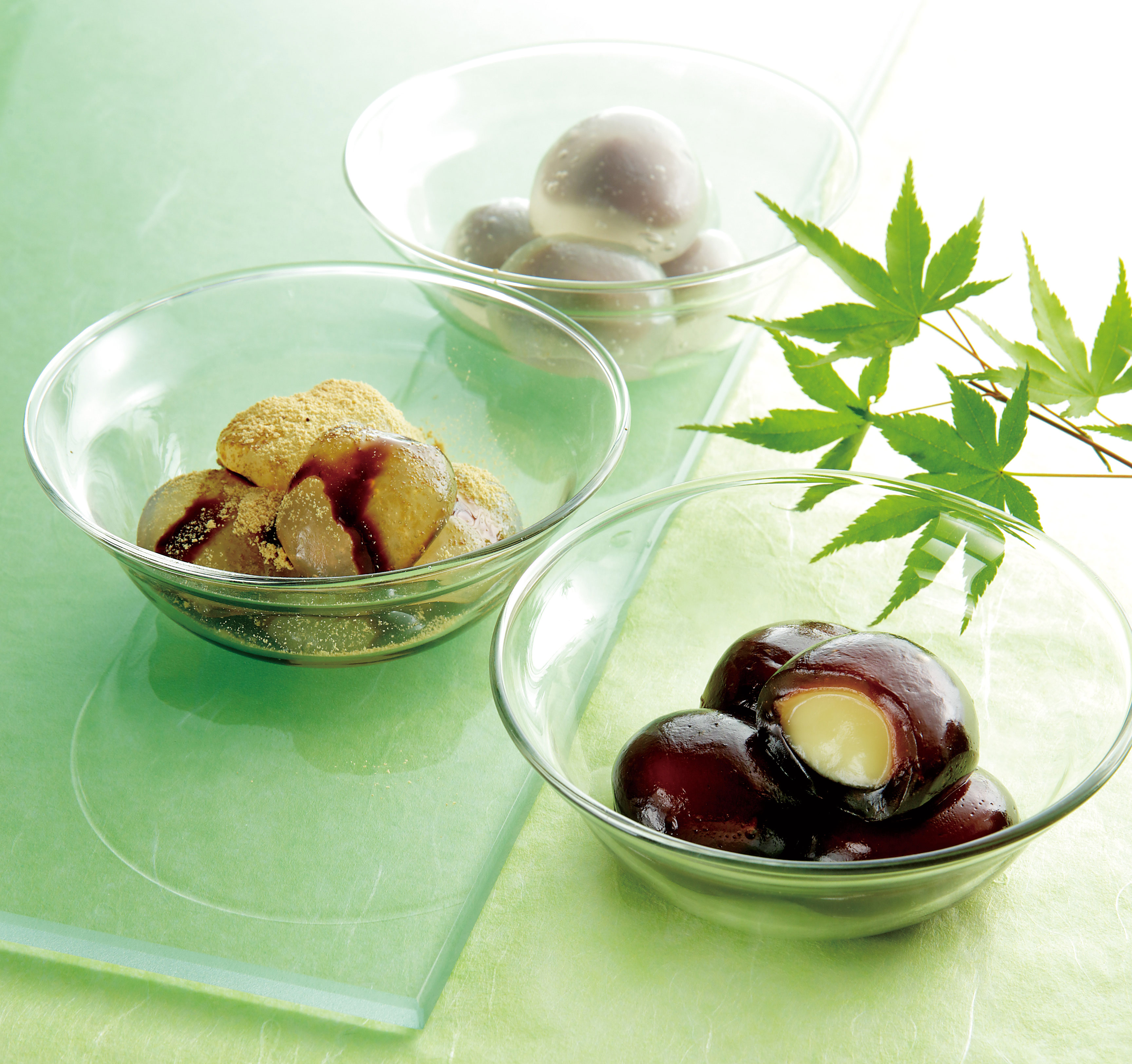 夏天的日式點心水饅頭、蕨菜餅、咖啡球各380日元