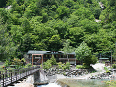 在過了吊橋的前面的一家旅館可以當日往返洗澡