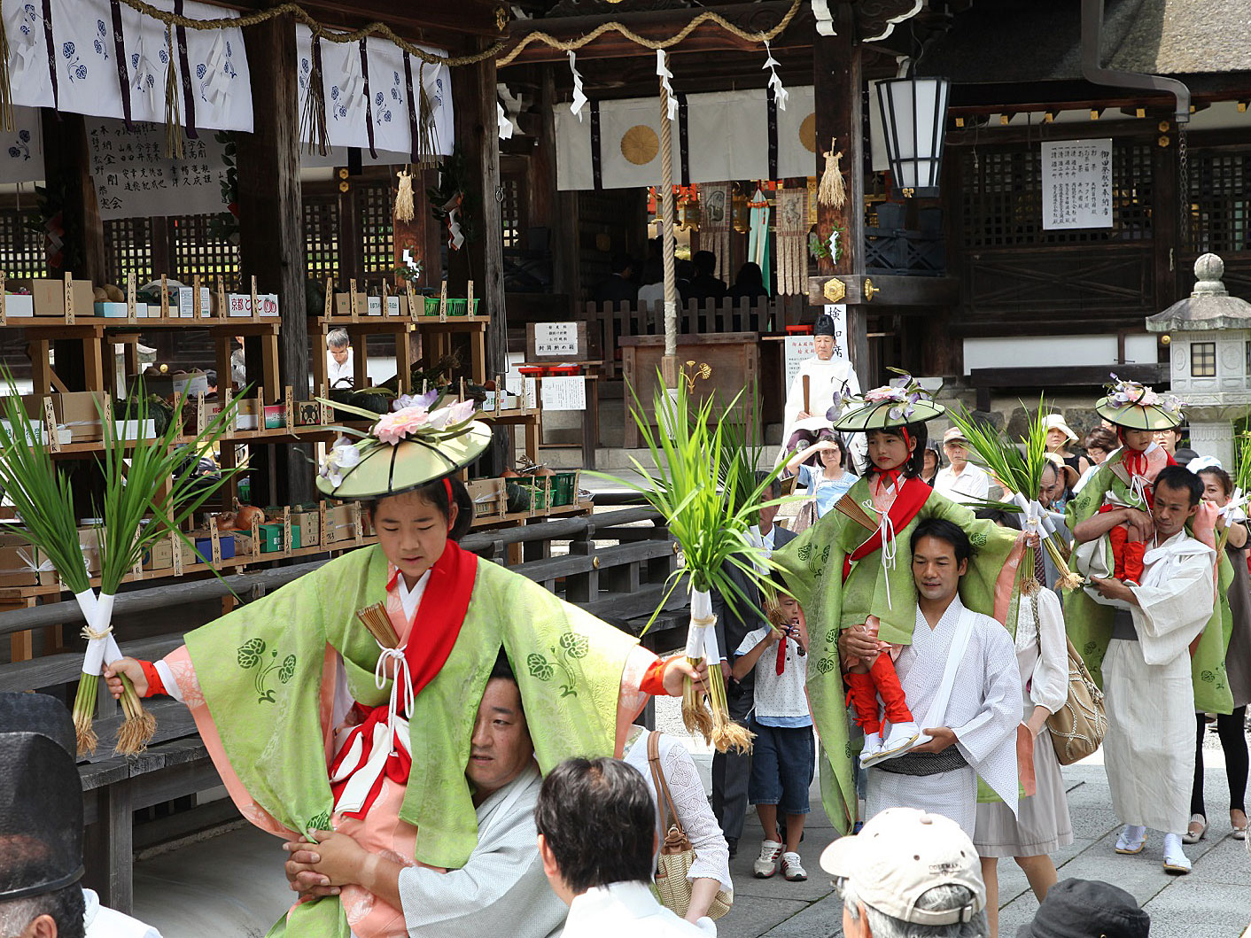 祈禱五穀豐登和田地除蟲的神事。 穿著色彩鮮艷的服裝的3個植女(童女) 從宮司授予早苗後,乘著壯夫的肩膀繞拜殿3圈。 還將進行這首曲子的奉獻。