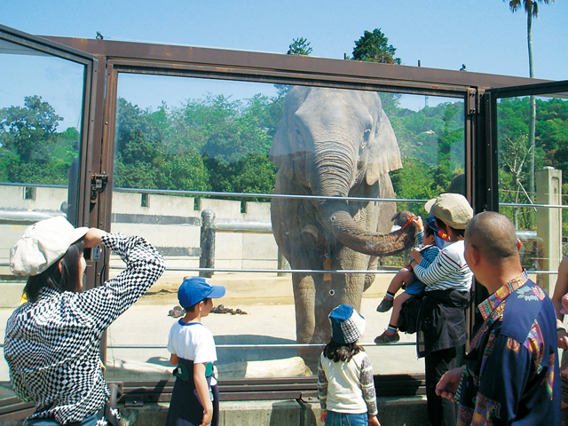 15万平方mの敷地面積を誇り、80種類約400点の動物を飼育。園内は動物の成育環境を再現した温帯・熱帯・サバンナ・寒帯の各区と、ヒツジやモルモットなどの小動物とふれあえるこども動物園など5つのエリアで構成され、のびのび暮らす動物の姿を観察できる。ゾウのエサやり(日曜、祝日の14時~)などイベントも充実。遊園地や植物園も併設し、一日中親子で遊ぶことができる。