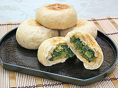野澤菜和柚子蘿蔔各1袋550日元等,把信州產的蔬菜做成美味的醬菜。 因為也可以試吃所以選擇喜歡的味道。 點心是使用蕎麥粉製作的特製烤餅220日元 ~。