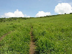 在白樺湖的東側展開的平靜的高原。 從女之神茶屋繼續散步路,步行約50分鐘左右就能眺望南阿爾卑斯山。 6月下旬可以看到連翹杜鵑花的群生。