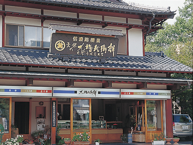 銘果的九增兵衛餅是天保10年(1839) 在蓼科溫泉開水的矢崎喜惣次,與溫泉治療客人的年糕有關的東西。 有核桃、艾蒿、紫蘇、栗子4種,1個95日元。 為了使用應時的素材,春天紫蘇變成櫻花。