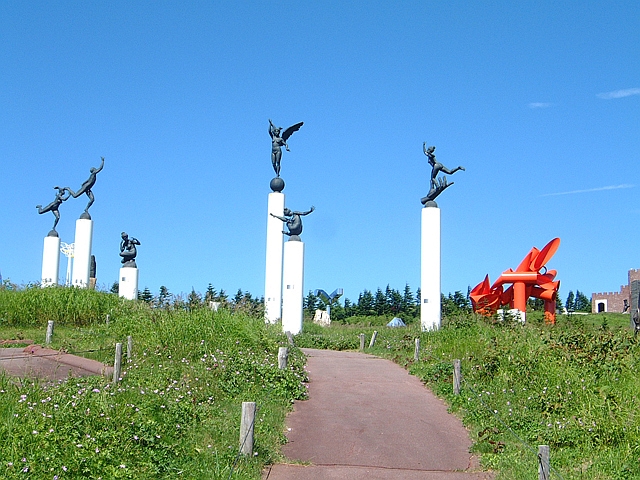 常設展示約350件雕刻作品。 把草原的綠色和天空的藍色抽象在畫布上,點綴著各種各樣的作品。 井上武吉的《我的天空大廳》、新宮晉的《星之羅盤》、塞薩爾的《大拇指》、魯津布爾的《麻雀》等國內外現代作家的個性、規模大的作品很多,這是其特徵。 從春天到秋天,白山貓頭鷹、楊樹蘭、松柏等可愛的花草盛開,一帶成為高山植物的寶庫。 與雕刻作品一起享受周圍360度的眺望和美麗的花草。