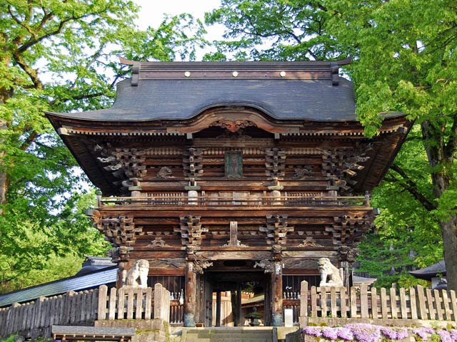 據說大同2年(807),坂上田村麻呂創建並祭祀了毗沙門天。 毗沙門堂是12.6m四面的堂,四面有緣。 樓門是日光東照宮的陽明門的總櫸樹構造。 每年3月第一個星期六舉行爭奪有利益的紙幣的裸押節 (國家的重要無形民俗文化財產),前一天的17點30分開始有大蠟燭的獻火等的前夜祭。