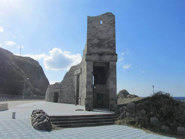 登陸後最先看到的,站在碼頭附近的紀念碑。 新島是世界上罕見的島嶼,近9成是用被稱為 「corga石」 的特殊輕石建造的,但塔是用這種corga石建造的。 因為爬到上面的話相當高,所以推薦在等回去的船的時候享受展望,拍旅行的紀念照。 因為風很大,所以要注意不要讓帽子等飛走。